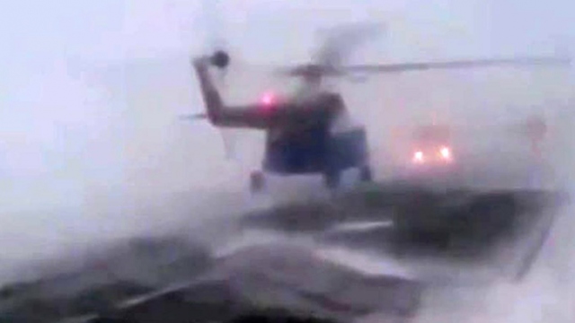 Rusya’ya bağlı Sibirya’da bir nakliye helikopteri kar fırtınasına yakalanınca kara yoluna acil iniş yaptı.