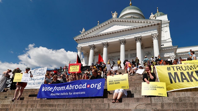 Helsinki'de Trump-Putin zirvesi protesto ediliyor