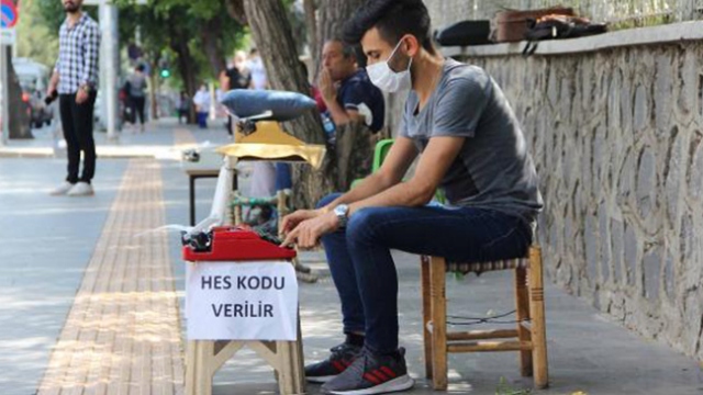 Diyarbakır Adliyesi önünde 2 yıldır arzuhalcilik yapan lise mezunu Mehmet Ali Askan, vatandaşlara dilekçe yazmanın yanı sıra HES kodu uygulamasında da destek oluyor. Askan'ın hedefi, üniversite sınavına girerek hukuk fakültesi kazanmak.