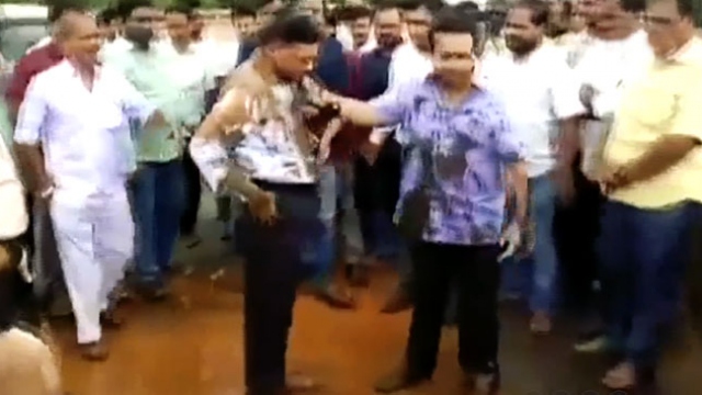 Hindistan'da yolların bakımsız olmasından şikayetçi olan bir milletvekili, yol çalışmasını yürüten mühendise sinirlendi, başından aşağı iki kova çamur döktü.