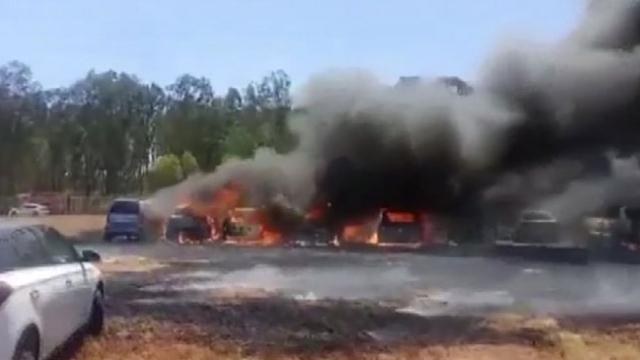 Hindistan’ın Bangalore şehrindeki bir otoparkta çıkan yangında 300 araç yandı.