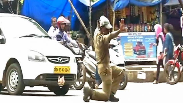Hindistan'da bir trafik polisi, sürücülerin dikkatini çekmek ve trafiği kontrol etmek için dans hareketlerini kullanıyor.