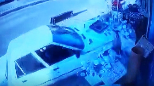 Hızını alamayan otomobil iş yerine daldı, 2 çocuk son anda kurtuldu