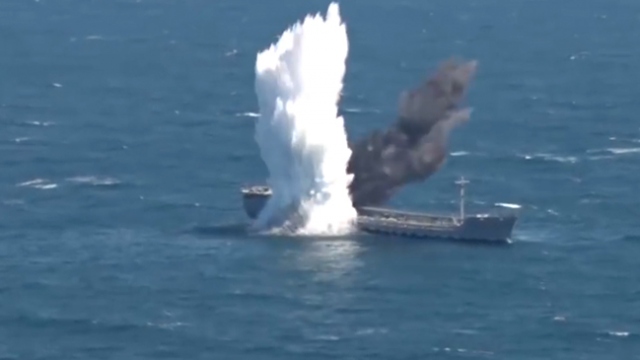 Deniz Kuvvetleri Komutanlığında görevli denizaltıcılar, atış eğitimleri kapsamında hizmet dışına ayrılan bir gemiyi harp torpidosuyla başarıyla vurdu.