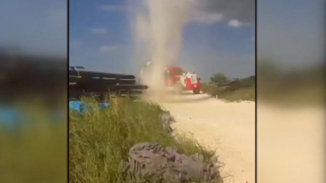 Şanlıurfa Göbeklitepe'de çıkan hortumu görüntülemeye çalışan bir işçi kendisini hortumun ortasında buldu.