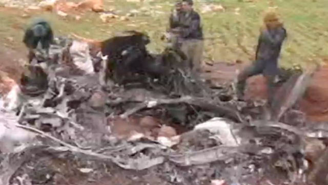 İdlib'de düşürülen rejim helikopterinin enkazı görüntülendi