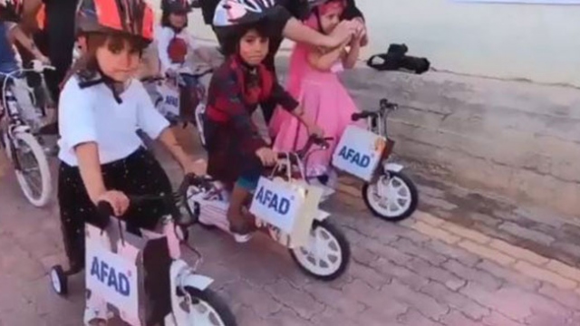 Afet ve Acil Durum Yönetimi Başkanlığı ile Gençlik ve Spor Bakanlığı iş birliğiyle, Suriye'nin İdlib kentinde bulunan Türk Kızılay Al-Raddiya yetimhanesindeki 137 çocuğa bisiklet hediye edildi.