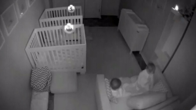 Uyumak istemeyen 2 yaşındaki ikizler, gece boyunca adeta parti verdi. İkizlerin odalarındaki gece sefasıysa kameraya yansıdı. Tüm yastıkları aşağı indiren ve oyun oynayan minik çocuklar, bir ara gürültü yapınca babaları yanlarına geldi.