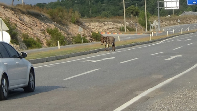 Kütahya Emet’te başıboş bir eşek, sürücülere ve zabıta görevlilerine zor anlar yaşattı.