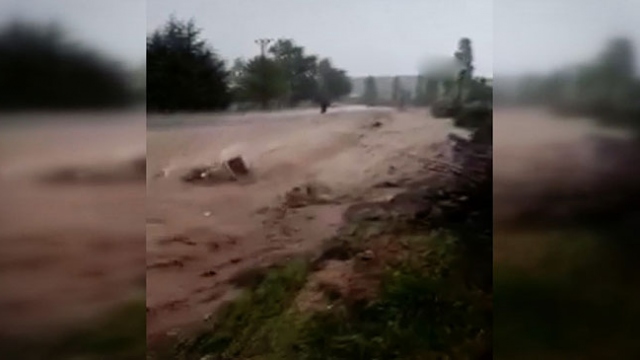 Nevşehir'de yağan şiddetli yağmur sonrasında inekler sele kapıldı. Metrelerce sürüklenen ineklerden ikisi telef oldu.