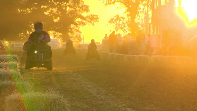 İngiltere'de düzenlenen "Çim Biçme Makinesi Dayanıklılık Yarışı"nda, dünyanın dört bir yanından yarışmaya katılan 43 takım çamurlu ve kaygan yolda yarıştı.