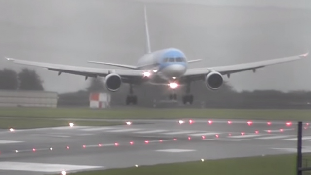İngiltere'nin Thomson Havayollarına ait Boeing 757-200 uçağı, Bristol Havaalanı'na inerken şiddetli rüzgarın etkisiyle yan döndü.