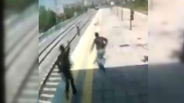 Küçükçekmece'de Mustafa Kemal tren istasyonunda bir kişi, rayların üzerine inerek intihara kalkışan kadını trenin önüne atlayarak son anda kurtardı.