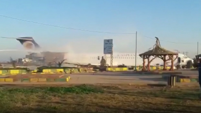 İran'da Caspian Havayollarına ait yolcu uçağı Mahşehr kentindeki havaalanına inişi esnasında pistten çıktı.