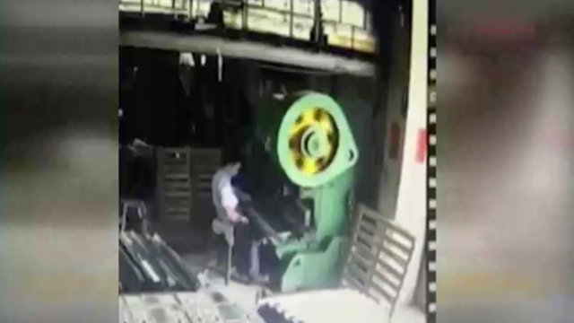Çin'de bir adam tonlarca ağırlıktaki makinenin altında kalmaktan son anda kurtuldu.
