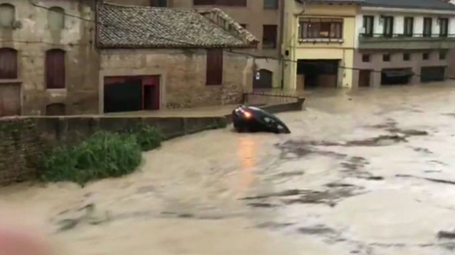İspanya'da meydana gelen sel nedeniyle bir kişi hayatını kaybetti, birçok iş yerini su bastı.