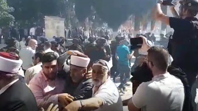 İsrail polisi, fanatik Yahudilerin Mescid-i Aksa'ya baskınlarını engellemek isteyen Filistinlilere Harem-i Şerif'in içinde müdahale etti.
