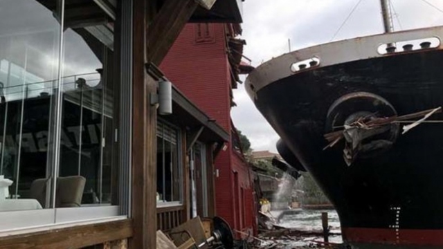 İstanbul Boğazı'nda bir gemi yalıya çarptı