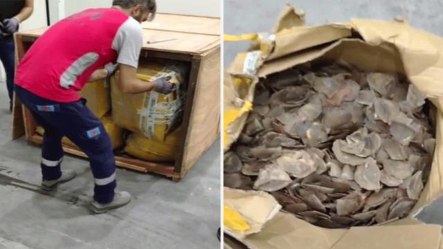 İstanbul Havalimanı'nda nesli tükenmekte olan hayvanlardan pangoline ait 1 ton 217 kilogram pul ele geçirildi.