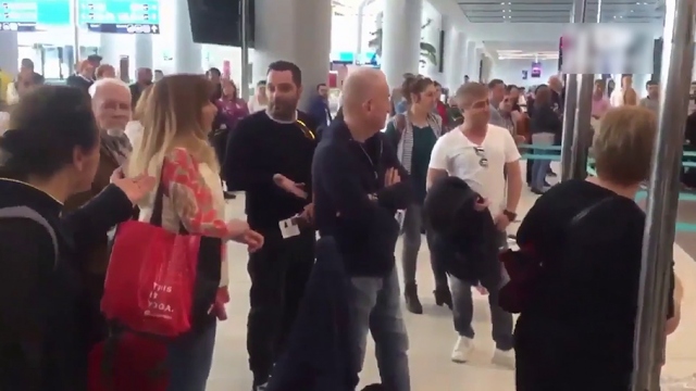 İstanbul-Milas Bodrum seferini yapan yolcu uçağı rötara girince yolcular yer hizmeti veren personele tepki gösterdi. Bir yolcunun hakarete varan tepkisi kameralara yansıdı.