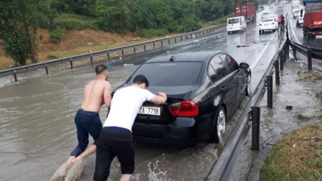 İstanbul'da etkili olan şiddetli yağmur ve dolu nedeniyle bazı cadde ve sokaklar göle dönerken, bazı ev ve iş yerlerini de su bastı. Su birikintilerinin oluştuğu cadde ve sokaklarda araçlarıyla seyir etmek isteyen vatandaşlar zor anlar yaşadı.