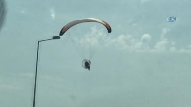 İstanbul'da sahil yolunda 'paramotor' şaşırttı