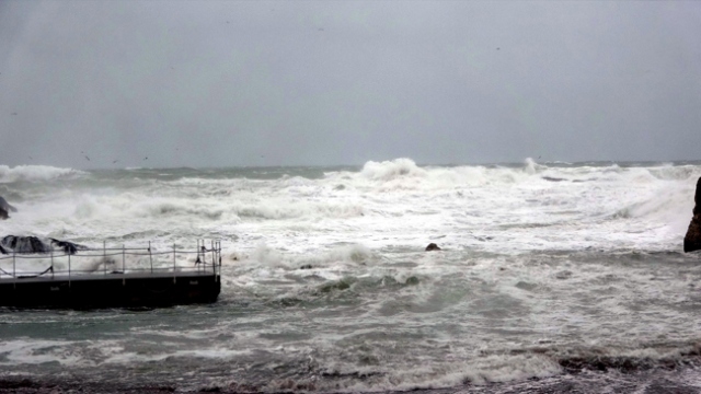 İstanbul’da beklenen şiddetli fırtına Kuzey kesimlerden şehre giriş yaptı. Karaburun sahilinde etkili olan şiddetli fırtına nedeniyle oluşan dev dalgalar, dalgakıran boyuna ulaştı.
