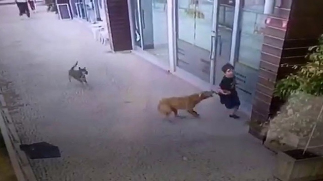 İstanbul'da sokak köpeklerinin çocuğa saldırısı kamerada