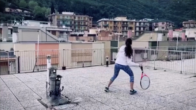 İtalya'nın Ligurya bölgesinde komşu iki genç kız, dışarı çıkamayınca evlerinin terasında tenis maçı yaptı.