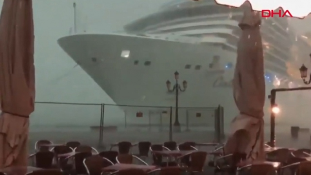 İtalya'da kötü hava koşulları nedeniyle dev bir yolcu gemisi kontrolden çıktı, limanı teğet geçti. O anlar an be an kaydedildi.