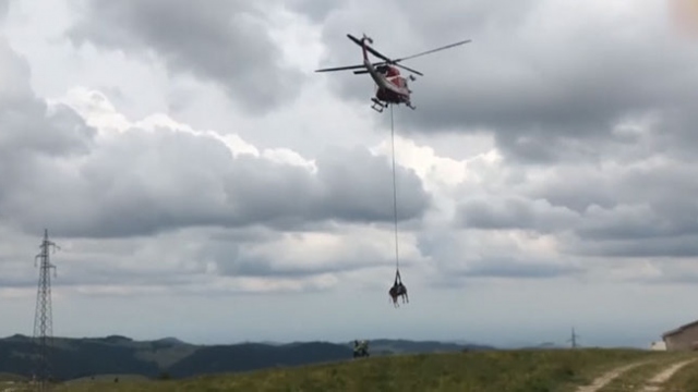 İtalya'da kayalıklara düşen inek helikopterle kurtarıldı