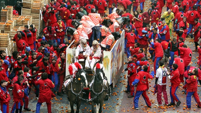 İtalya'nın Kuzeyinde Torino yakınlarında Ivrea kentinde 'Geleneksel Portakal Savaşı Festivali' renkli görüntülere sahne oldu.