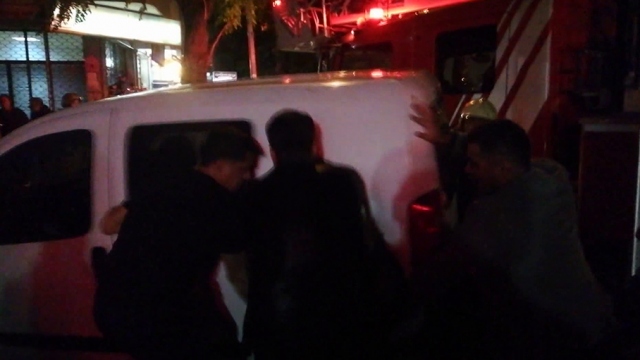İtfaiyenin yolunu kapatan aracı mahalleli el birliğiyle kaldırdı