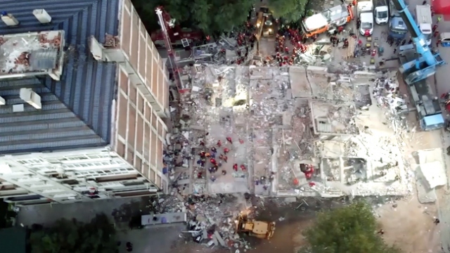 İzmir'de enkaza dönen binalar havadan görüntülendi