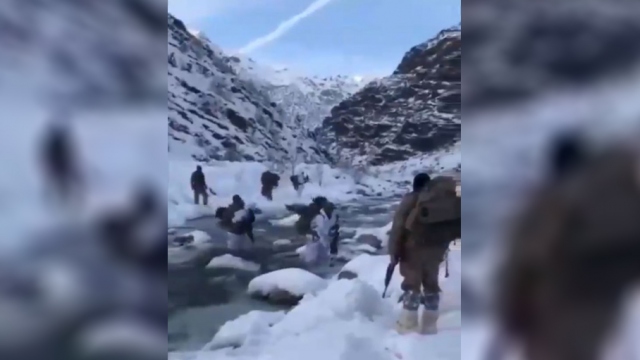 Jandarma Komandolar Hakkari Çukurca Kazan Vadisinde zorlu kış şartlarında buz tutmuş dereden geçti. Görüntüleri Jandarma Genel Komutanlığı sosyal medyadan paylaştı.