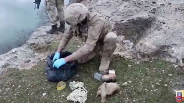 Siirt İl Jandarma Komutanlığınca terör örgütü PKK'ya yönelik düzenlenen operasyonda, 300 metre kablo, 2 ateşleme düzeneğine bağlı telsiz, 1 akü ve 2 kg plastik patlayıcı ele geçirildi.