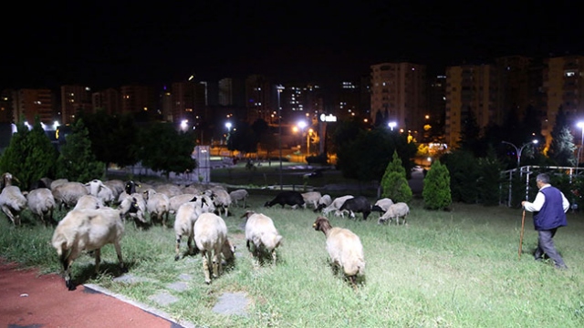 Adana'da bir ağıldan kaçan 110 koyun, 2 kilometre mesafedeki çocuk parkında otlarken bulundu.