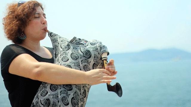 Kadın tulum sanatçısı enstrümanı dünyaya tanıtıyor