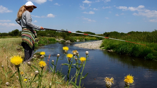 Kars'ın Selim ilçesinde bazı kadınlar, güzel manzaralı derelerde oltayla balık tutmanın tadını çıkarıyor.