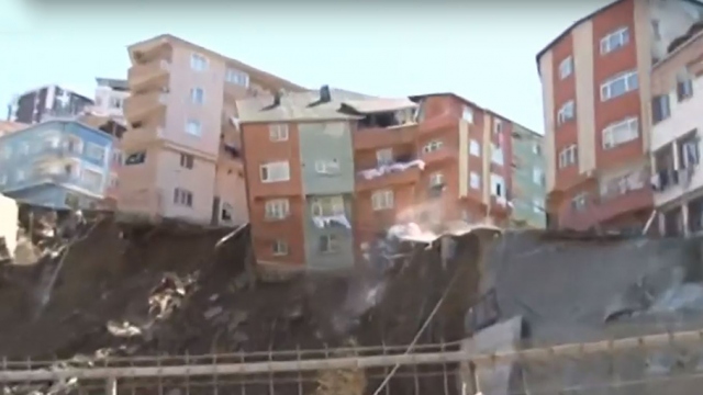 Kağıthane'de bir inşaatın istinat duvarının çökmesinin ardından tahliye edilen 4 katlı bina çöktü. Binanın çöküş anı an be an kameralara yansıdı.
