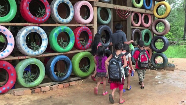 65 öğrencinin kayıtlı olduğu Kamboçya'daki Coconut School, geri dönüştürülmüş atıklardan inşa edildi.