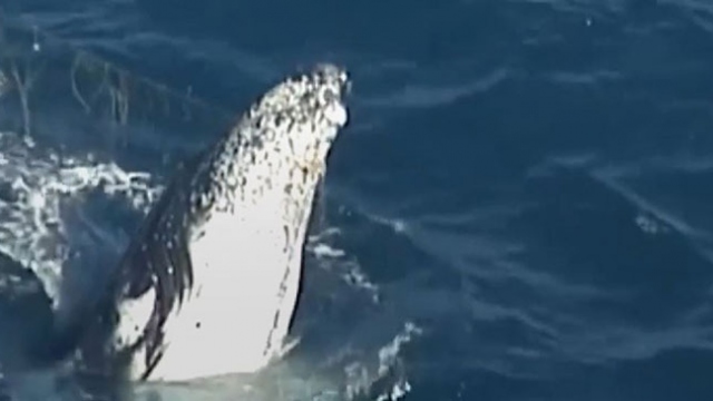 Kambur balina köpek balığı ağlarından kurtarıldı
