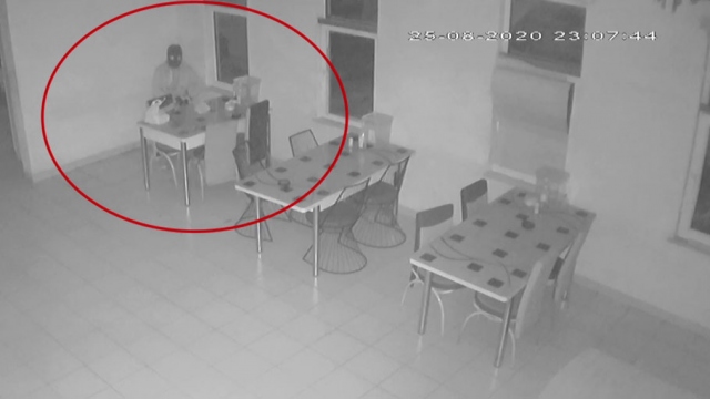 Kamerayı fark eden hırsız yemek yedikten sonra fabrikadan ayrıldı