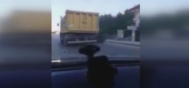 Başkent'te kaydedilen görüntülerde, belediyeye ait kamyonu kullanan sürücü darbeci askerlerin kullandığı tanka kafa tutuyor.