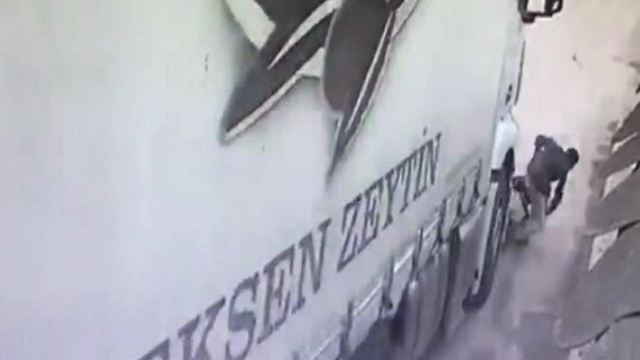 Manisa’da elektrikli bisikletiyle ara sokaktan çıkan bir çocuk, önünden geçtiği kamyonun hareket etmesiyle ezilme tehlikesi yaşadı.