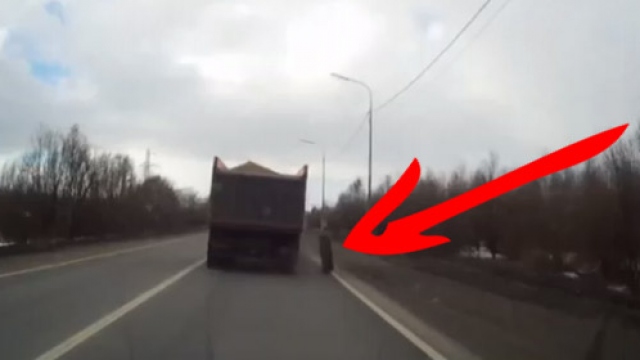 Rusya’da trafikte ilginç bir görüntü yansıdı bir araç kamerasına. Kum yüklü bir kamyonun dev lastiği, bir anda yerinden çıktı ve hoplaya zıplaya yol kenarında ilerlemeye başladı. Durumu fark etmeyen kamyon şoförü yoluna devam ederken, lastik de bir trafik tabelasına çarpıp durdu.