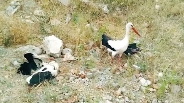 Kanadı kırık leylek ölen eşinin başından ayrılmadı