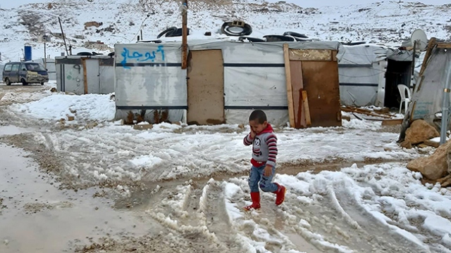 Lübnan'ın Arsal Kampını vuran kar fırtınası çadırlarda, teneke veya plastik evlerde yaşayan Suriyeli mültecilerin çektiği acıyı artırıyor.