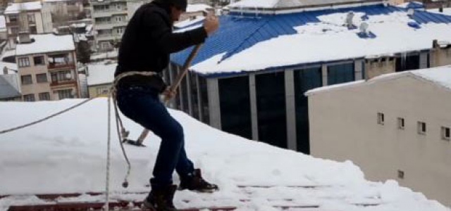Doğu Anadolu Bölgesi'nde etkili olan kar, bazı vatandaşların geçim kaynağı haline geldi- 3-4 kişilik ekipler, yüksek binaların çatılarında biriken karları temizleyerek ekmek parası kazanıyor.