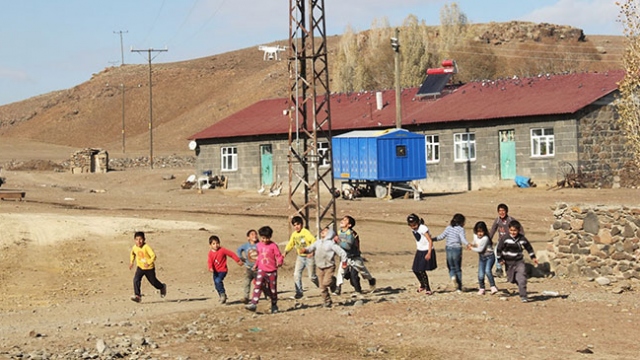 Kars'ta ilk defa drone gören çocukların mutluluğu